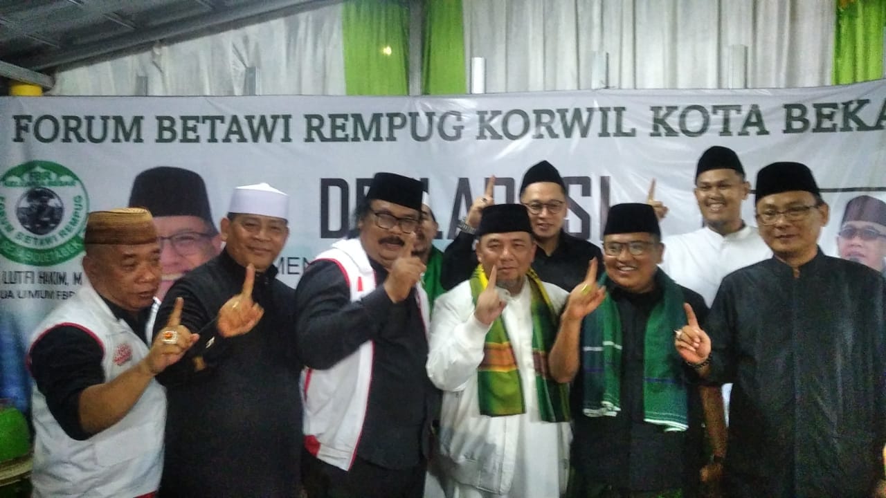 Rotasi.co.id – Forum Betawi Rempug (FBR) Koordinator Wilayah (Korwil) Kota Bekasi mengadakan perayaan Maulid Nabi Muhammad SAW sekaligus deklarasi dukungan untuk pasangan calon Walikota Bekasi, Heri-Sholihin.
