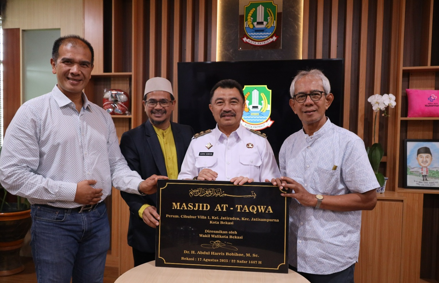 Rotasi.co.id – Wakil Wali Kota Bekasi, Abdul Harris Bobihoe, menandatangani prasasti peresmian Masjid At-Taqwa yang berlokasi di Perumahan Cibubur, Kelurahan Jatiraden, Kecamatan Jatisampurna.