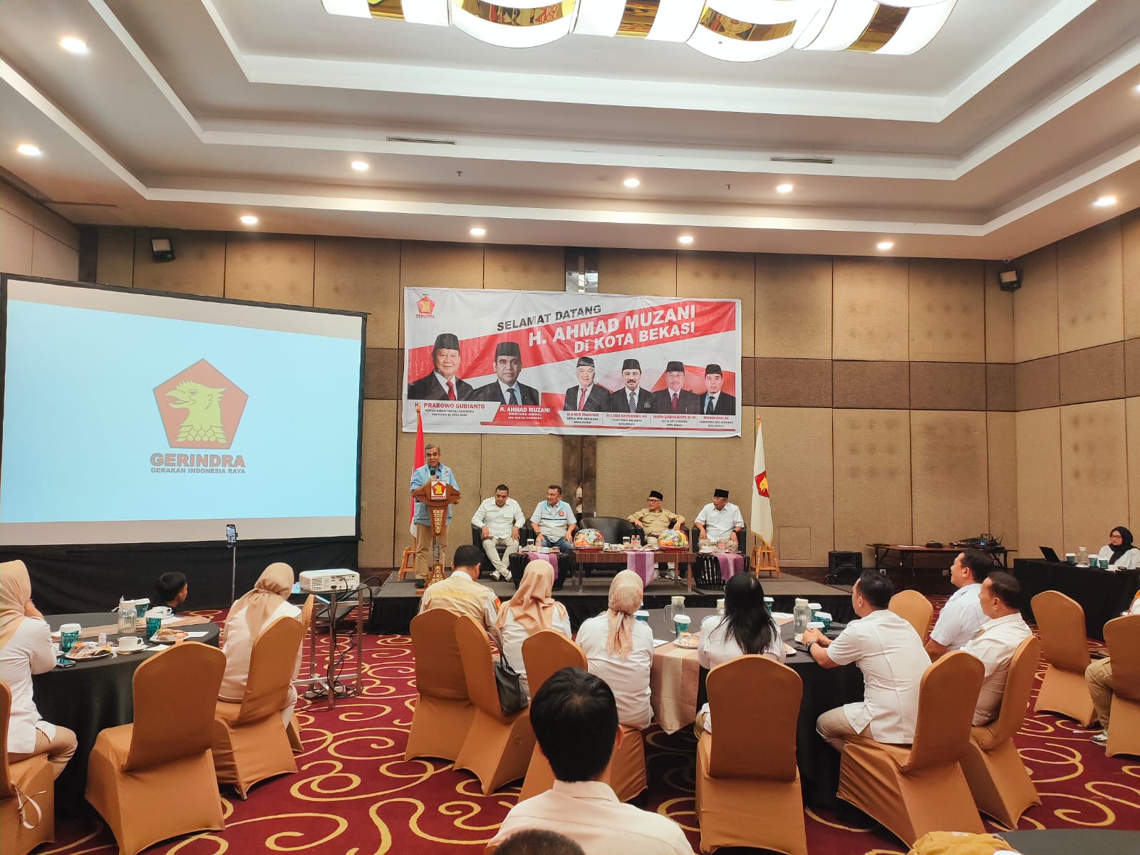 Rotasi.co.id – Sekretaris Jenderal (Sekjen) Dewan Pengurus Pusat (DPP) Partai Gerindra, H Ahmad Muzani melakukan kunjungan silaturahmi kepada Dewan Pengurus Cabang (DPC) Partai Gerindra Kota Bekasi, di Hotel Aston Imperial, Kota Bekasi, Minggu (17/11/2024).