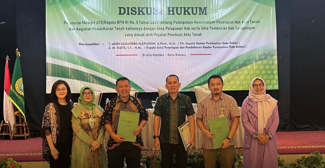 Rotasi.co.id — Dalam upaya memperkuat pemahaman, sinergi, dan keselarasan tugas antara instansi pertanahan dan Pejabat Pembuat Akta Tanah (PPAT), Pengurus Daerah Kota Bekasi Ikatan Pejabat Pembuat Akta Tanah (IPPAT) menyelenggarakan Diskusi Hukum Pertanahan bertajuk “Peran Strategis PPAT dan Notaris dalam Proses Pendaftaran Tanah: Fokus pada Akta Pelepasan Hak dan Akta Pemberian Hak Tanggungan.”