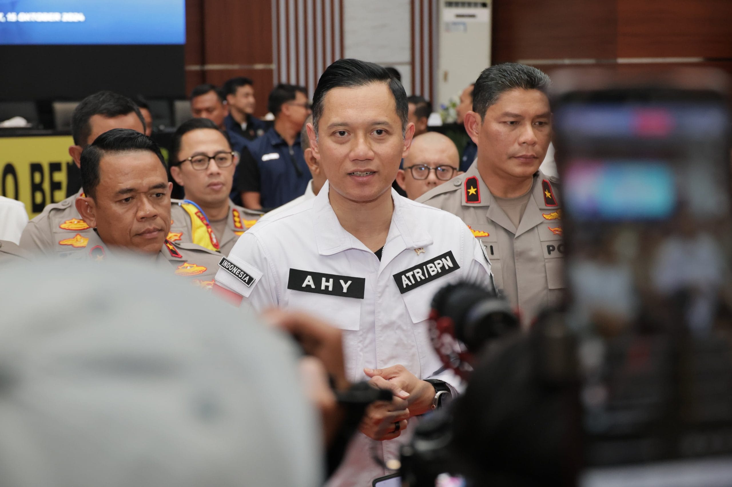 “Kita semua menunjukkan tugas pokok tetap nomor satu dan kita lanjutkan gebuk mafia tanah,” kata AHY dalam konferensi pers, di Polres Metro Bekasi, Kabupaten Bekasi, Selasa (15/10/2024).